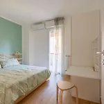 The Green Apartment, di 60 m^2, offre un ristorante e una bottega del barbiere e si trova a una distanza di 3 km da un luogo ideale per le famiglie, come il Luna Park LunEur. Quest'appartamento offre una terrazza con viste sulla strada.